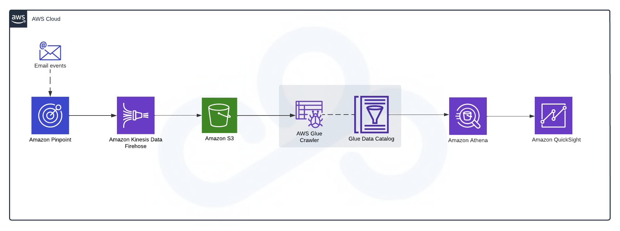 To achieve this, we proposed a Data Lake architecture with Amazon Kinesis Firehose as streamingtool and Amazon QuickSight as BI tool.This architecture utilizes an Amazon Kinesis Data Firehose Delivery Stream as a conduit connecting Amazon Pinpoint events to Amazon S3. Data is stored in JSON format in S3, organized by a yyyy/mm/dd partitioning scheme.